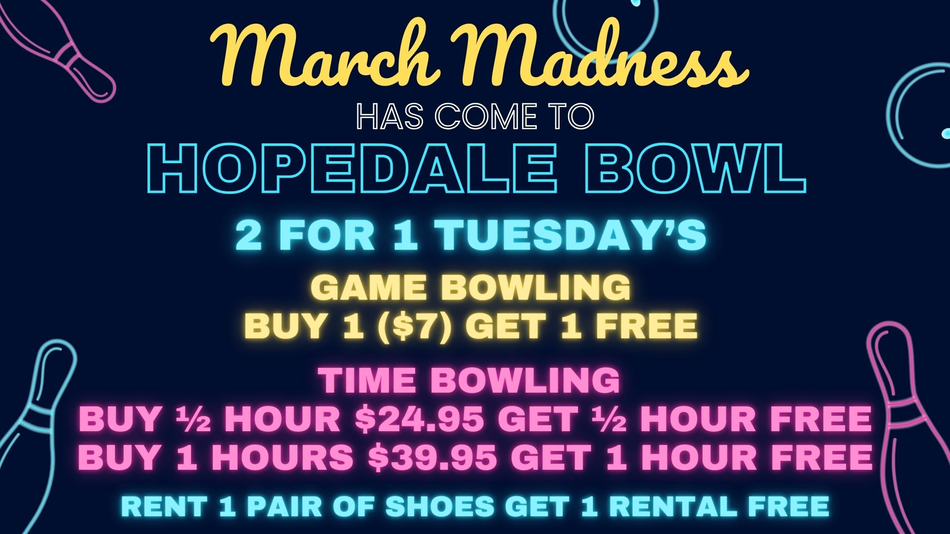 Weekends prove to be a hit with our Glow in the Dark Bowling. Our online DJ ensures that current and classic music is available for all ages. Celebrating a Birthday?? Young or Old – Glow/ Cosmic Bowling provide a great atmosphere.